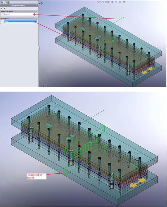 3DQP Section Sketch is used to import cross section sketch of assembly into component on selected plane.