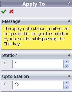 For swap part feature, the apply to operation can set the swap part to apply up to a certain station