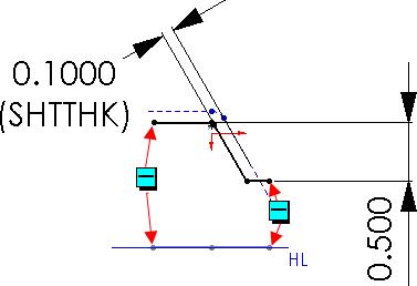 23. Create a sketch on Right Plane...Offset sketch BS 0.1in. Add relation and name the offset dimension to SHTTHK. Name sketch to Sketch 5