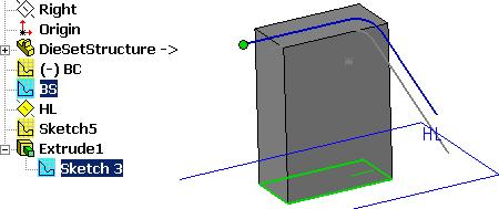 24. Select Sketch 3 and click Tools, Boss/Base; Extrude, Up to Vertex and select the end point of Sketch BS