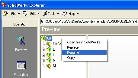 - Open <3DQuickPress>\DieSetAssemblyTemplate\DS06\00.sldasm