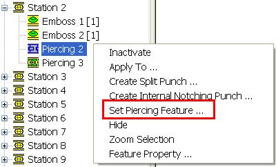 An alternate method to create internal notching. It is similar to Set Notching Feature but apply to Hole face instead of stock. An Internal Notching feature will be created. This function is available from Piercing Feature Shortcut menu. And