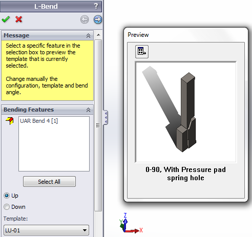 - Select the bend from graphic area or Click Select All to automatically select all Bend Features from Strip Layout