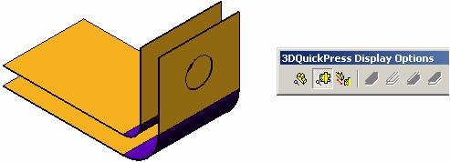 3 icons from 3DQuickPress Display Tool Bar are used to control the display of SolidWorks model and 3DQuickPress unfold part.