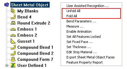 Global level Fold/Unfold is available from Sheet Metal Object shortcut menu.