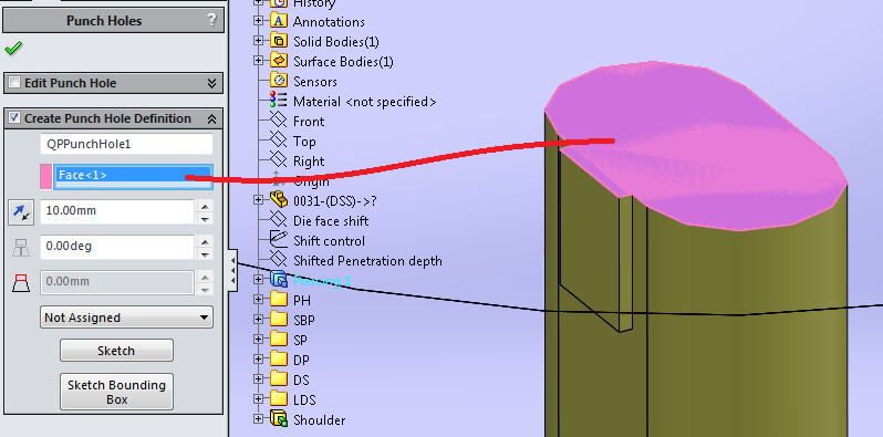 - Click Straight Slot on the SolidWorks Sketch toolbar