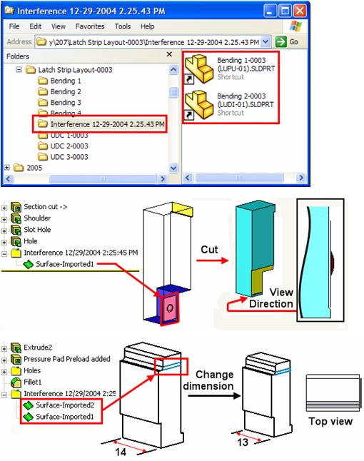 Interference detection is used to check the interference in die set. 3DQuickPress Interference Detection is able to consider surface interference as well. The interference region will be an imported body as a reference to model the clearance.