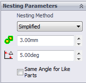 In the Nesting Parameters select Simplified mode, and input 3 mm for the blank distance, 5 degree for the incremental angle.