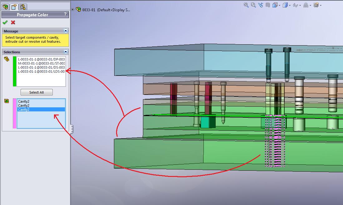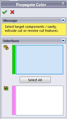 Target Component – Components to be painted with the manufacturing information Cut Pocket Feature – Cut feature on the target components that is going to be painted with the manufacturing color Select All – Select all cut feature on the target components into the cut pocket feature |