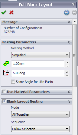 - Number of Configuration - Number of possible configuration for the blank arrangement according to the current setting. If the number of configuartion is above the limit, then the nesting operation cannot be done.