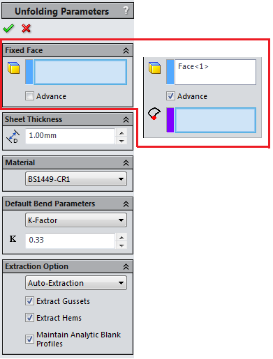 Reverse Normal – For shell body unfold when the selected fix face have reverse normal.