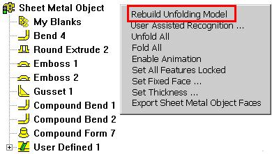 3DQuickPress unfold data is associated to SolidWorks data, once the solid body is modified, a rebuild icon will be stacked toSheet Metal Object icon to notify user the modification.