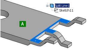 - Click Insert, Curve, Split Line, select Face A to Faces to Split