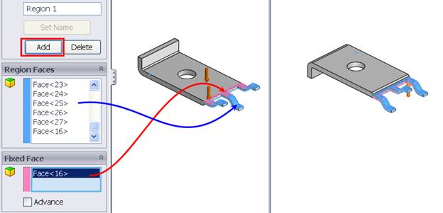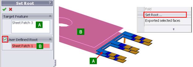 - RM select Face A, click Set Root, check User Defined Root, click face B