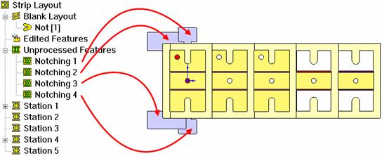 Select all the faces and click Set Notching Punch and Strip Layout Design have the notching punches added to Unprocessed Features folder