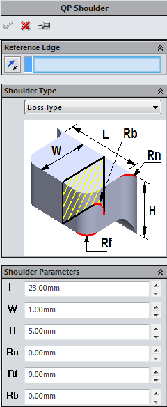 Parameters Parameters to control the size of the shoulder or groove |