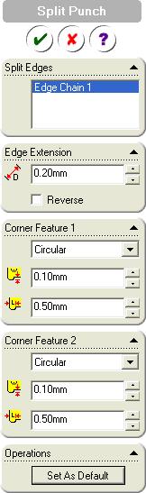 Split edges list out all the profiles split the punch Edge Extension set the undercut amount and direction Corner Feature 1 & 2 have options to select the corner type and the amount of undercut