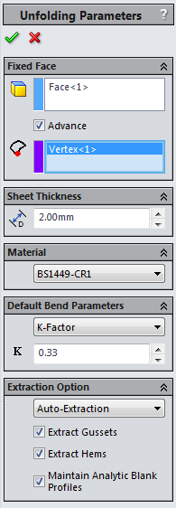or click 3DQuickPress, Unfold Part, Unfold PartTo unfold a part using non-planar fixed face: