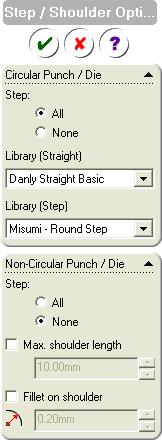 Library for straight and step punch is selectable from the list which allow a combination of inch and metric unit. Non-circular Punch/Die