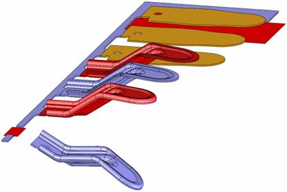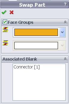 Face Group allowing the selection to top and bottom face by face color grouping. User can model multiple forming stage in the same document and identifying them by different color. If face group is not turned on, the solid body of the of the part will be imported to the strip layout. Associate Blank list all the blanks and let user to select which blank to swap |