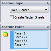 - Select top and bottom faces of the UAR BCorner to Feature Faces