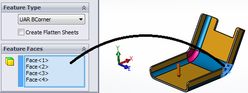 UAR BCorner is used to handle connecting faces between 2 bend features in a flange area.