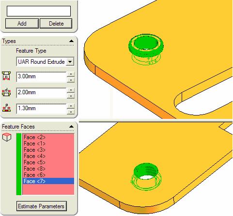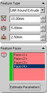 A normal round extrude should composed of cylindrical faces and toroids. Those normal round extrude is recognized by 3DQuickPress automatically. UAR Round extrude is used to recognize non-standard round extrude or those is not composed of analytic geometries. ![]()